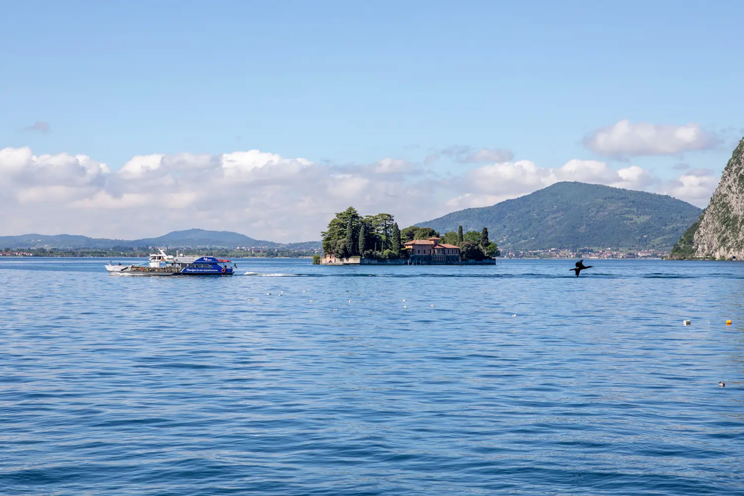Boarding in Iseo means leaving everyday frenzy behind. The motorboat glides slowly across the lake, surrounded by a landscape that looks like a watercolor painting: calm waters, soft blue reflections, and the mountains gently embracing the lake.